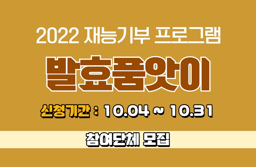 ○ 신청기간 : 2022. 10. 4.(화) ~ 10. 31.(월)/재료 및 예산 소진시 조기 마감