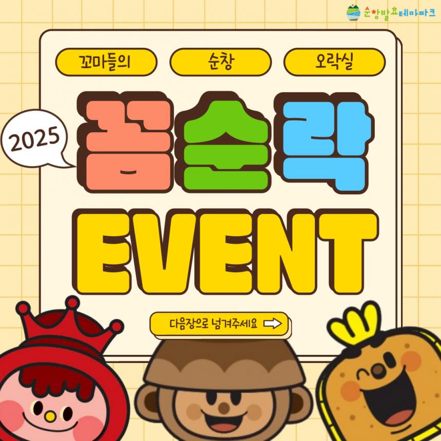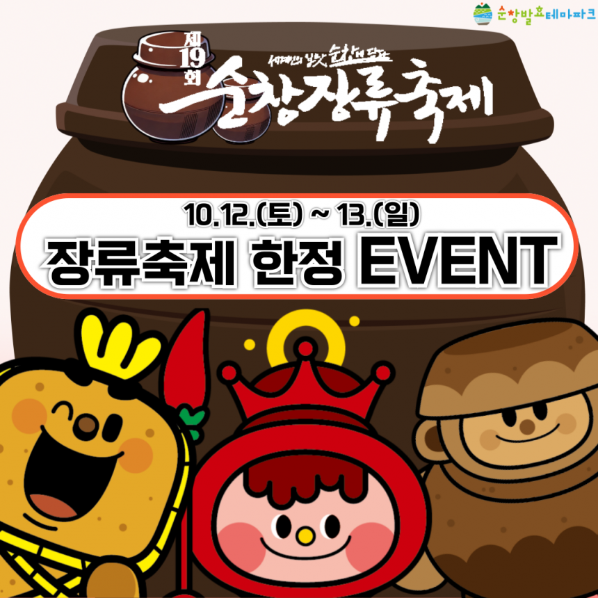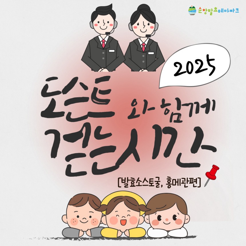 시설안내 종합안내도 캐릭터 소개 전시시설 발효소스토굴홍메관팡이관효모관다년생식물원햇살라운지 놀이시설 콩이관 1층콩이관 2층고고관 야외시설 천년광장팡이공원 편의시설 F&B기타편의시설기념품샵 이용정보 입장요금 운영시간 이용유의사항 오시는길 교육행사 행사·이벤트 교육프로그램 알림마당 공지사항 자료실 사진자료홍보자료 자주묻는질문 예약 개인예약 단체예약 신청내역확인
