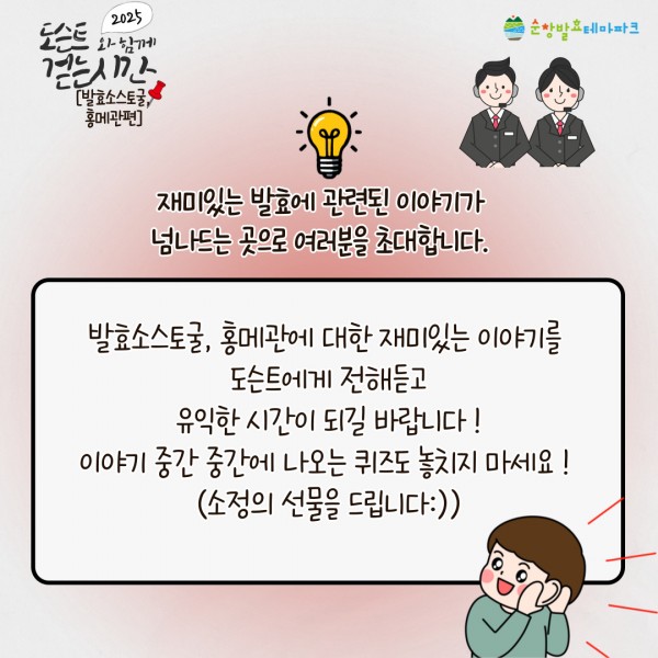 시설안내 종합안내도 캐릭터 소개 전시시설 발효소스토굴홍메관팡이관효모관다년생식물원햇살라운지 놀이시설 콩이관 1층콩이관 2층고고관 야외시설 천년광장팡이공원 편의시설 F&B기타편의시설기념품샵 이용정보 입장요금 운영시간 이용유의사항 오시는길 교육행사 행사·이벤트 교육프로그램 알림마당 공지사항 자료실 사진자료홍보자료 자주묻는질문 예약 개인예약 단체예약 신청내역확인