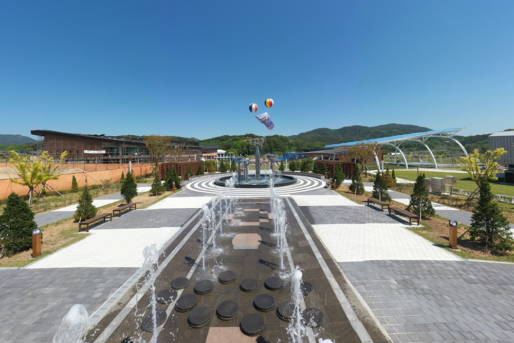 왼쪽으로는 야외상설무대로 다양한 문화공연 축제 등이 펼쳐지는 고추장상설문화마당과 꽃과 나비를 형상화한 기운생동 분수대를 누구나 마음껏 즐길 수 있습니다.